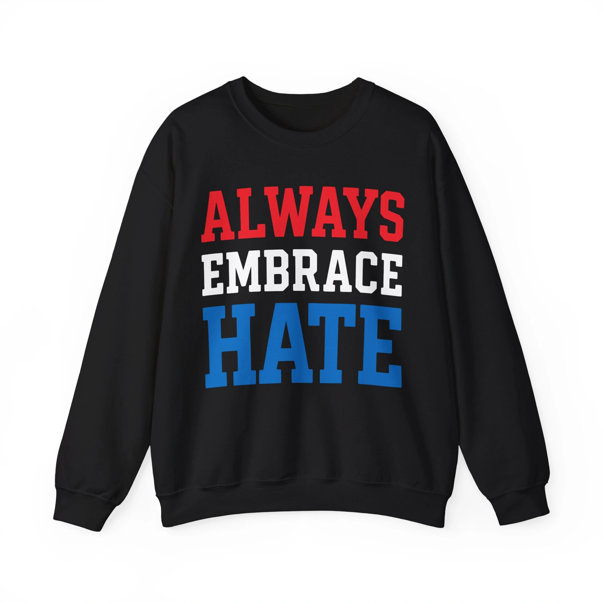 In massive block letters, the shirt reads: ALWAYS EMBRACE HATE
