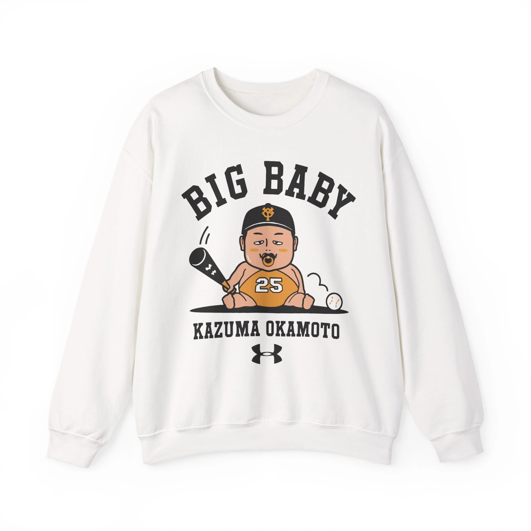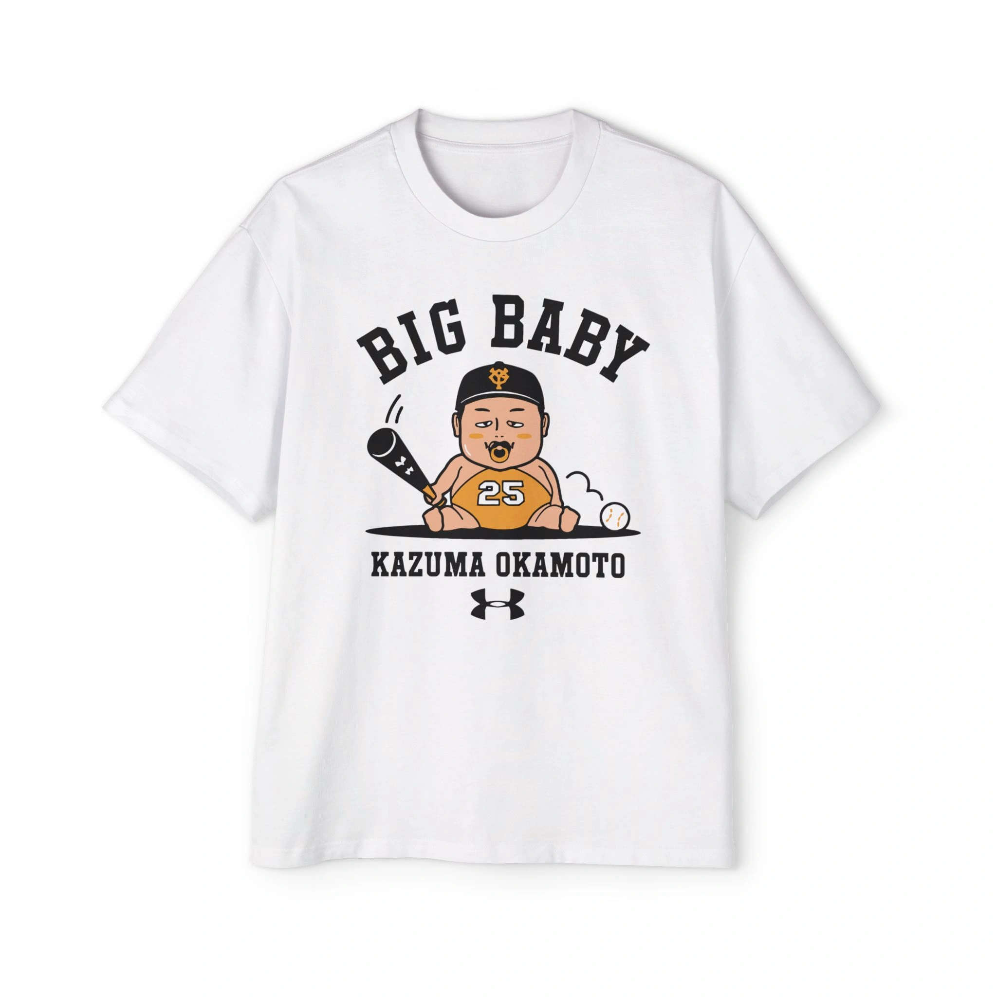 The Branding: Bold, collegiate-style text reads “BIG BABY” across the top, with “KAZUMA OKAMOTO” and the Under Armour logo anchoring the design below, giving it an authentic, athletic feel.