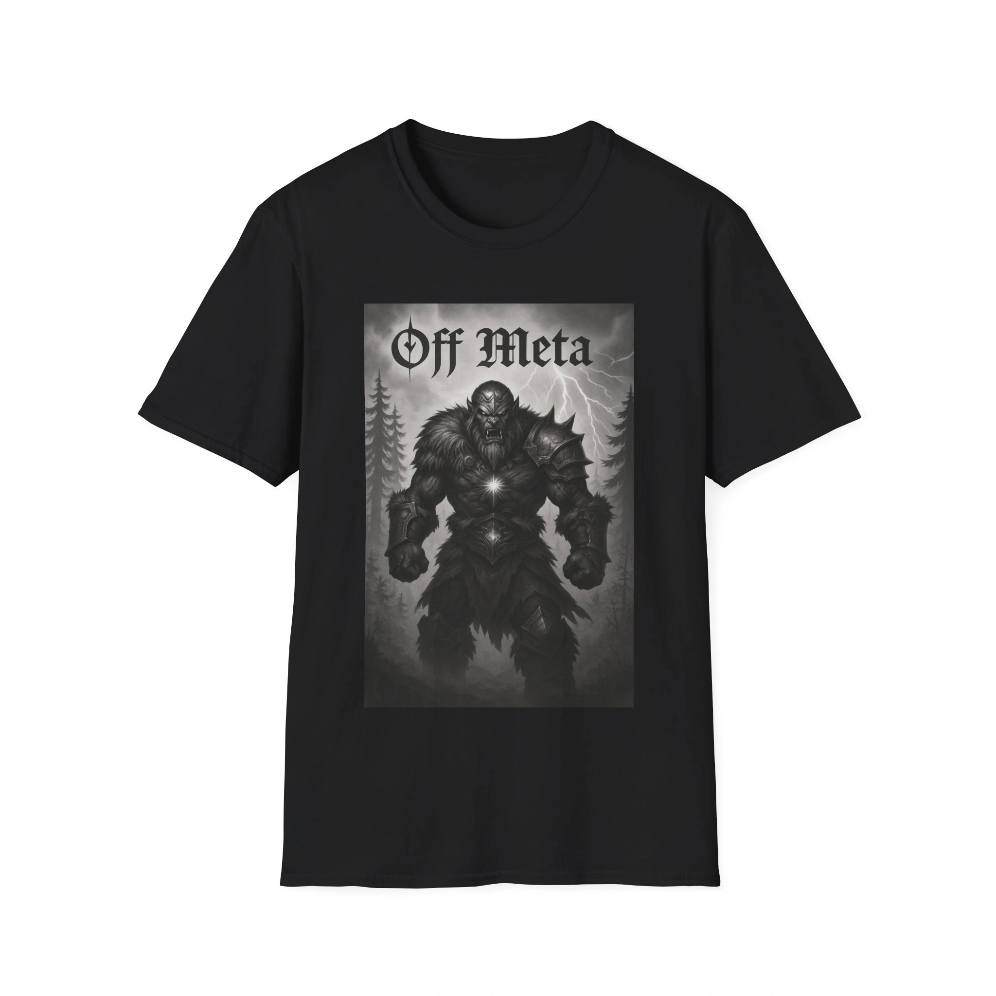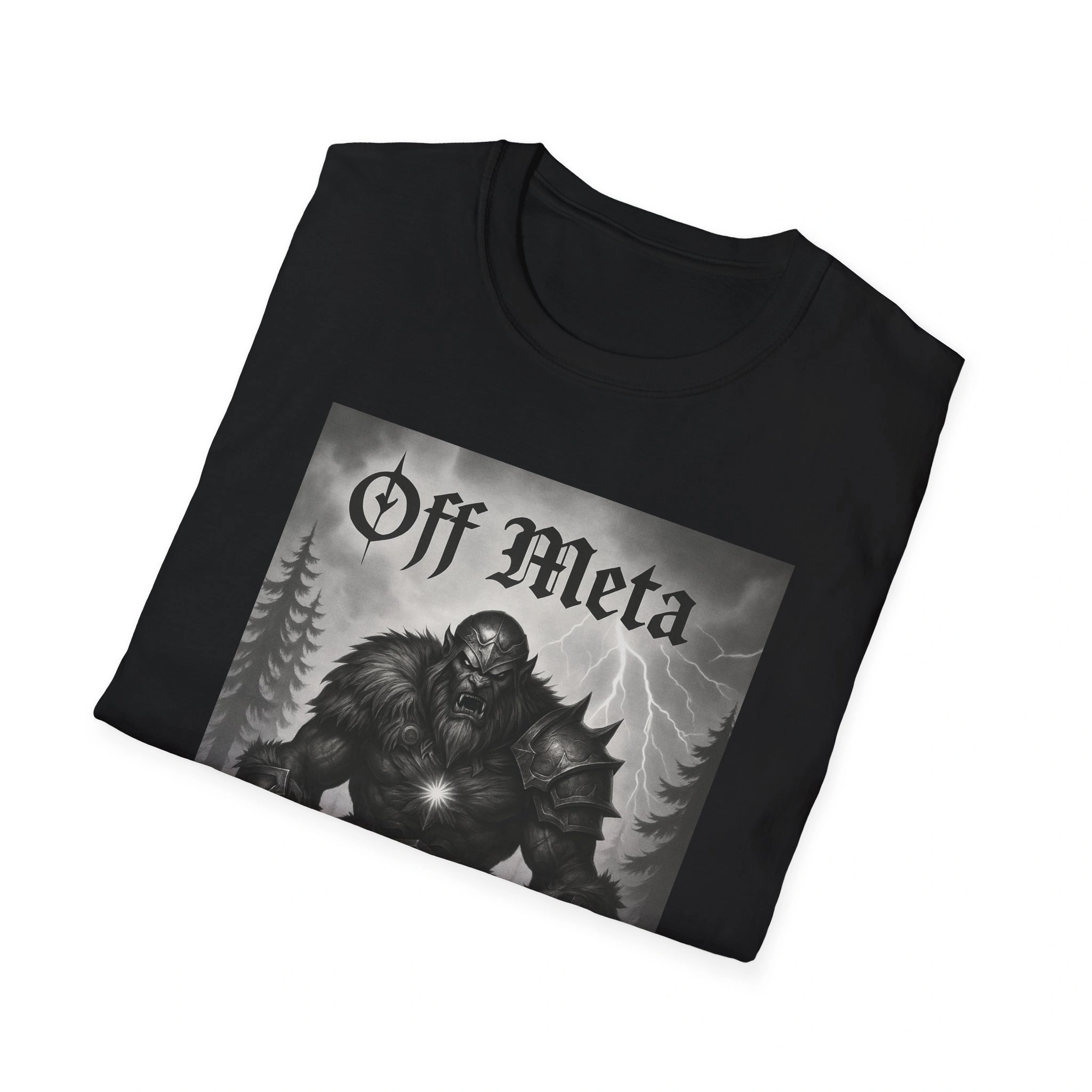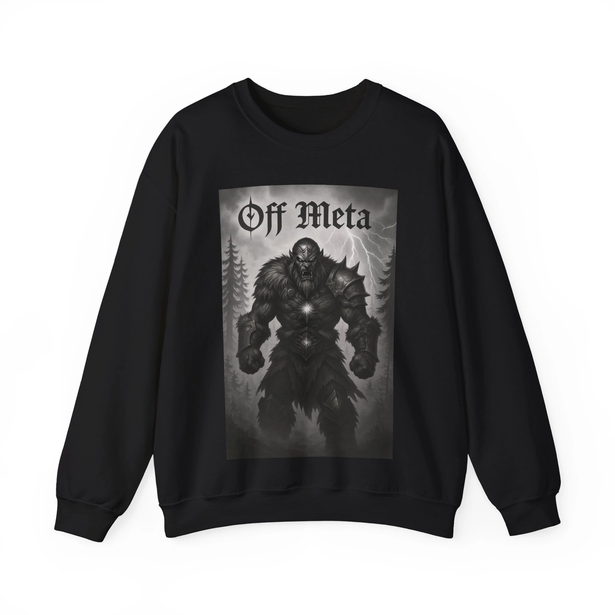 At first glance, the design reads like a classic fantasy cover. Then it roars. A hulking warrior steps forward, fangs bared, plates of rune-etched armor glowing at the chest. Storm clouds coil behind him. Pines bend. Lightning forks. The typography lands like a crit. Off Meta isn’t just a caption. It’s a philosophy for players who win their own way.