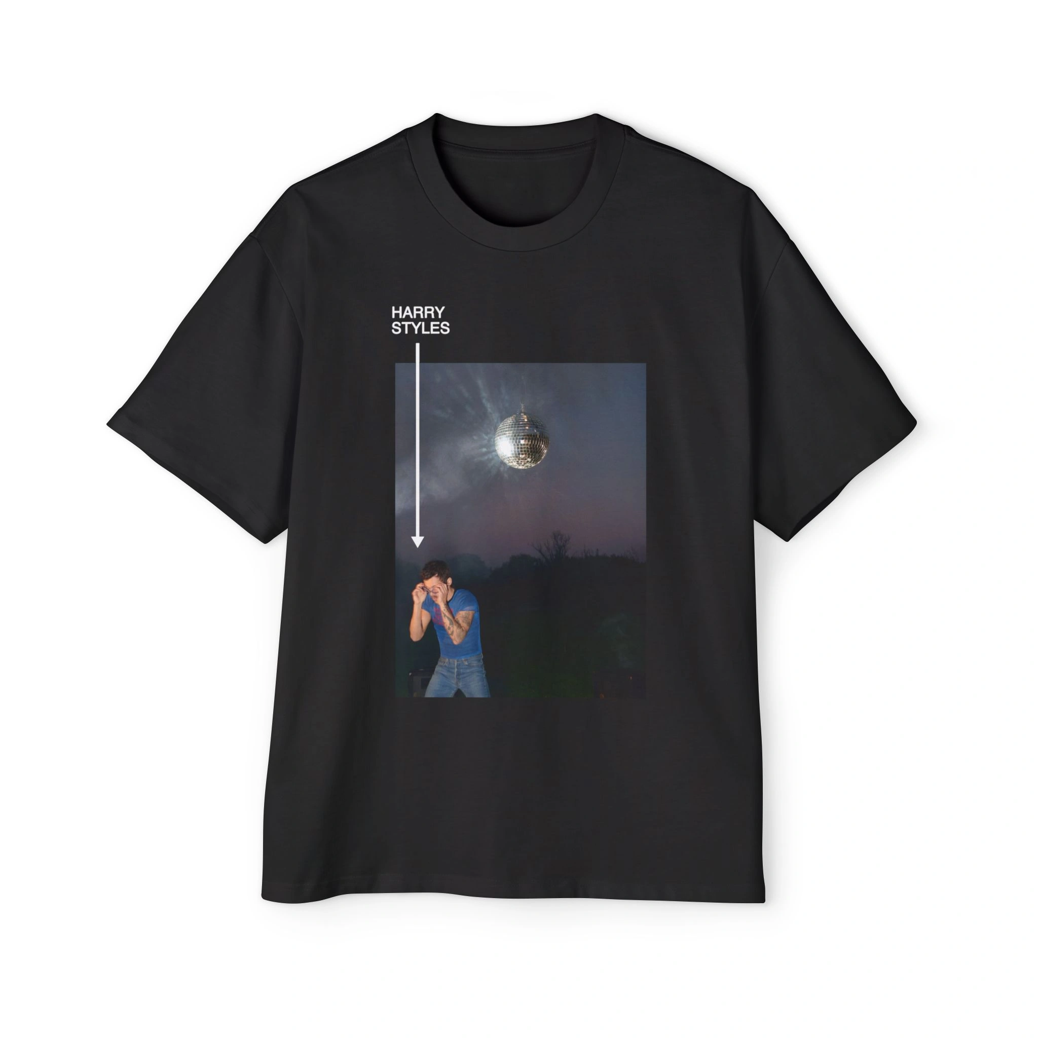 The Vibe: Inspired by the album’s artwork—which features Harry in sunglasses ducking beneath a disco ball in the night sky—this shirt channels that same mix of cool mystery and dancefloor readiness.