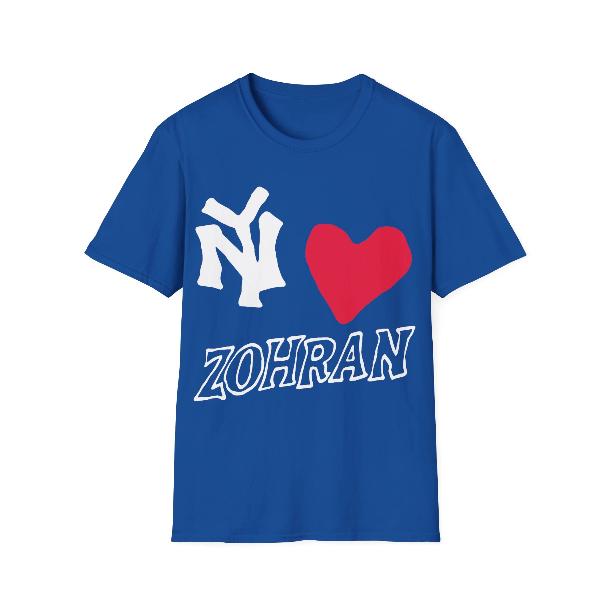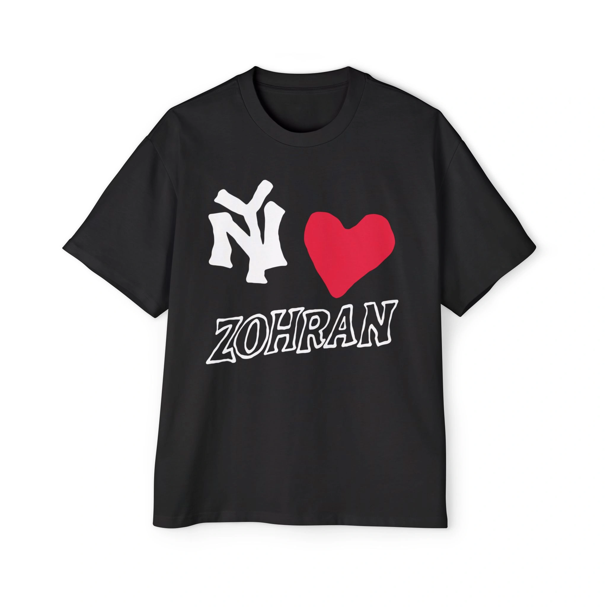 • Iconic, Bold Graphic: Features the unmistakable “NY Loves ZOHRAN” text, with the New York Yankees logo and a bold red heart, screen-printed for a sharp, lasting finish that won’t fade.