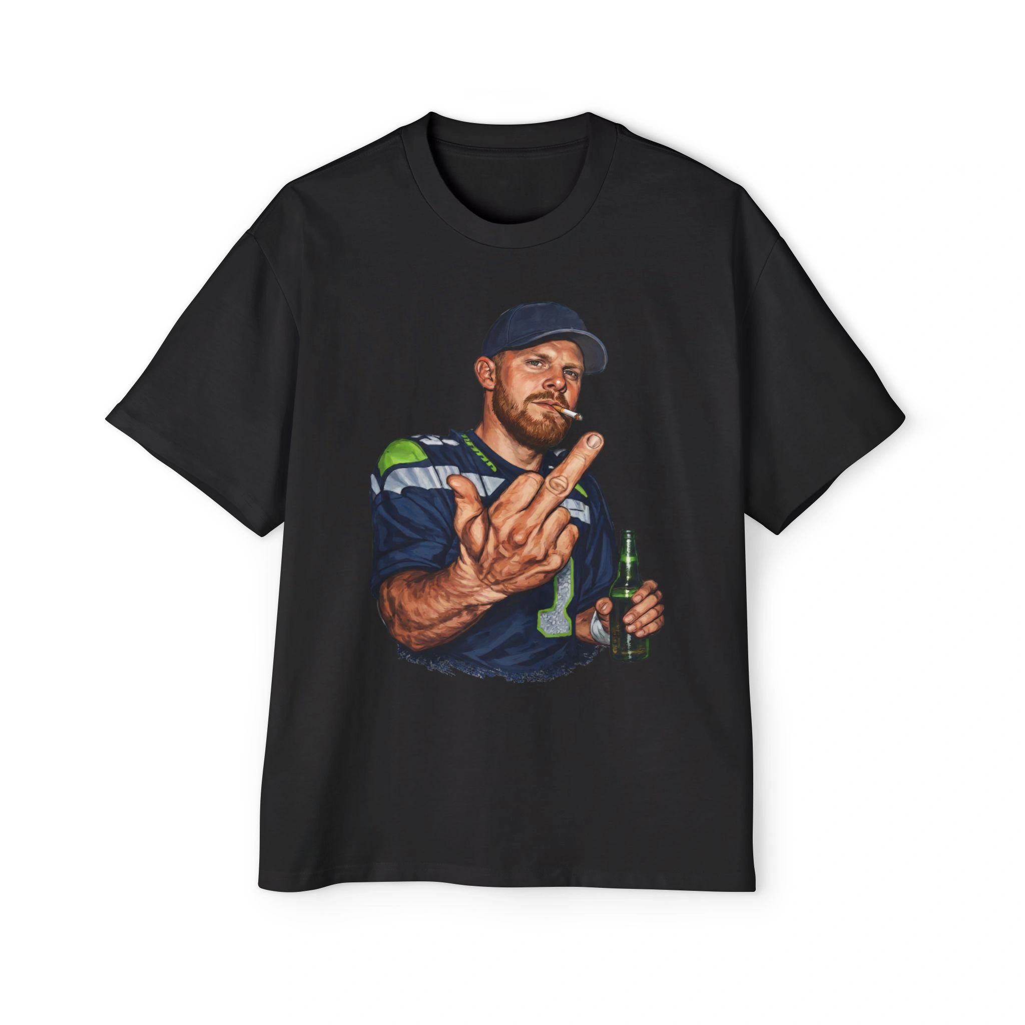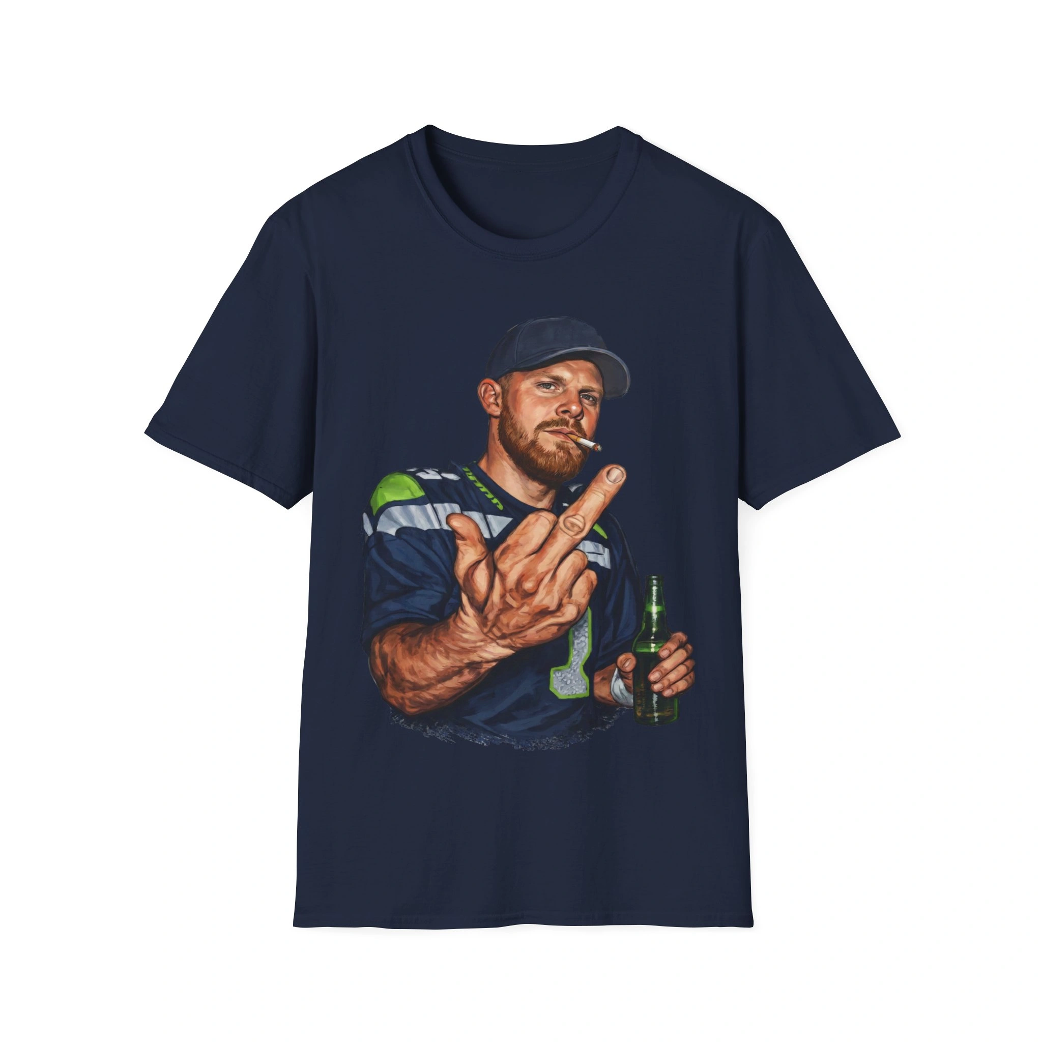The “Sam Darnold Middle Finger Shirt” is the defining image of the Seattle Seahawks’ raucous Super Bowl LX victory parade. Worn by linebacker and vocal leader Ernest Jones IV while addressing the crowd, this t-shirt instantly became legendary for its unapologetic attitude.