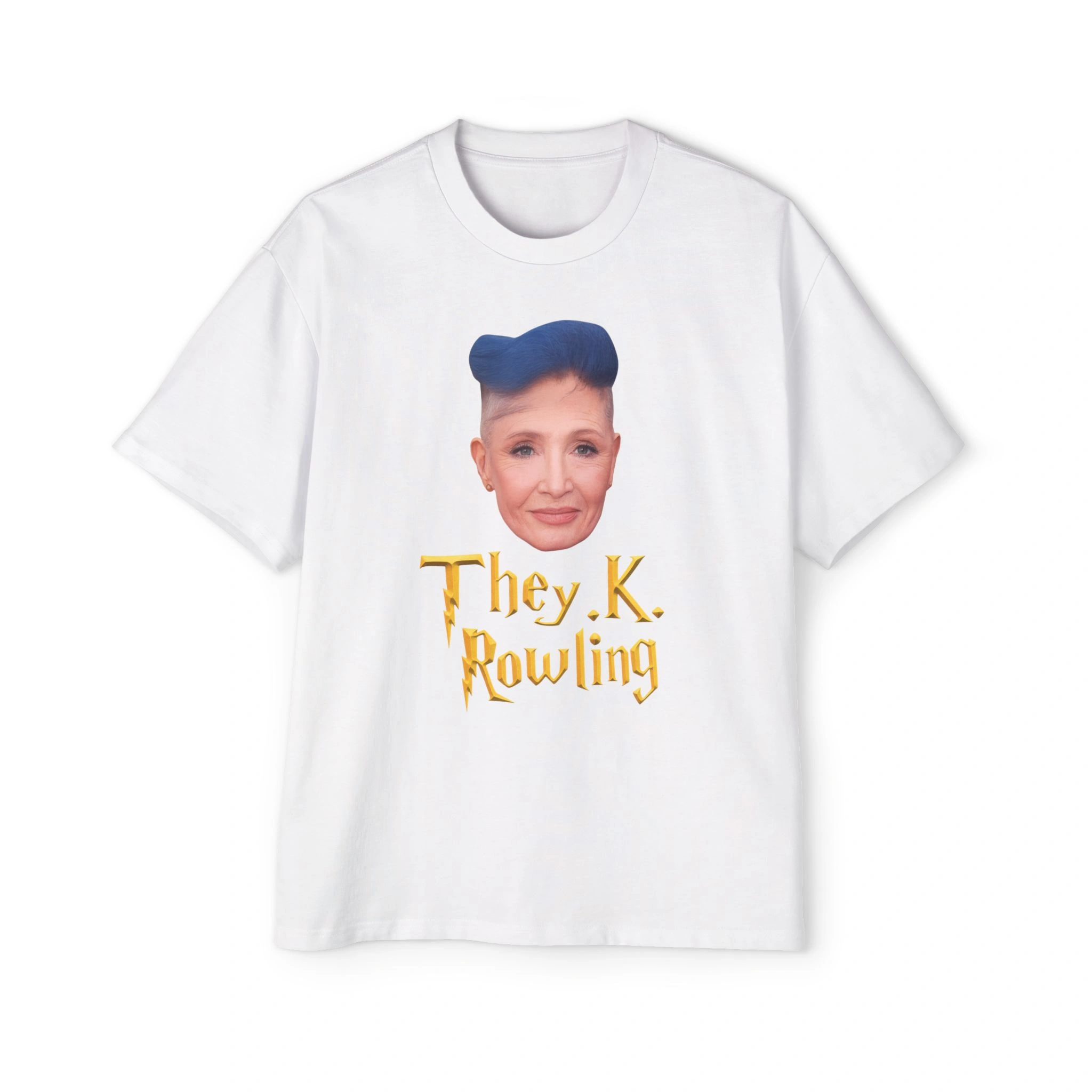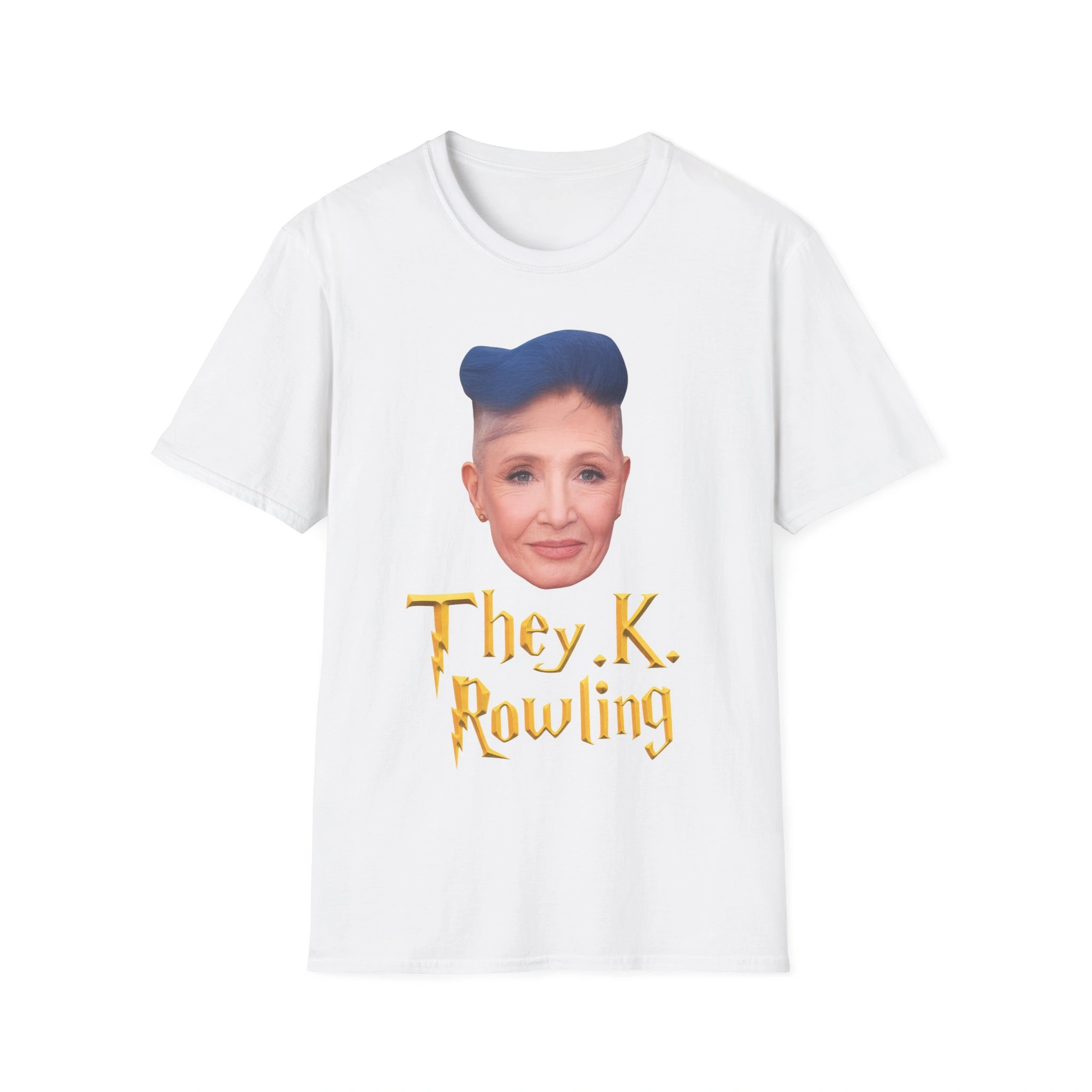 This shirt captures that exact energy. The design pairs a bold portrait-style graphic with crisp block lettering that reads clearly from across the room. It looks like a protest sign and a punchline at the same time. That tension is the point. It nods to the ongoing debate over Rowling’s public trans views, yet it keeps the humor front and center. So the tee works as both pop-culture souvenir and conversation starter.
