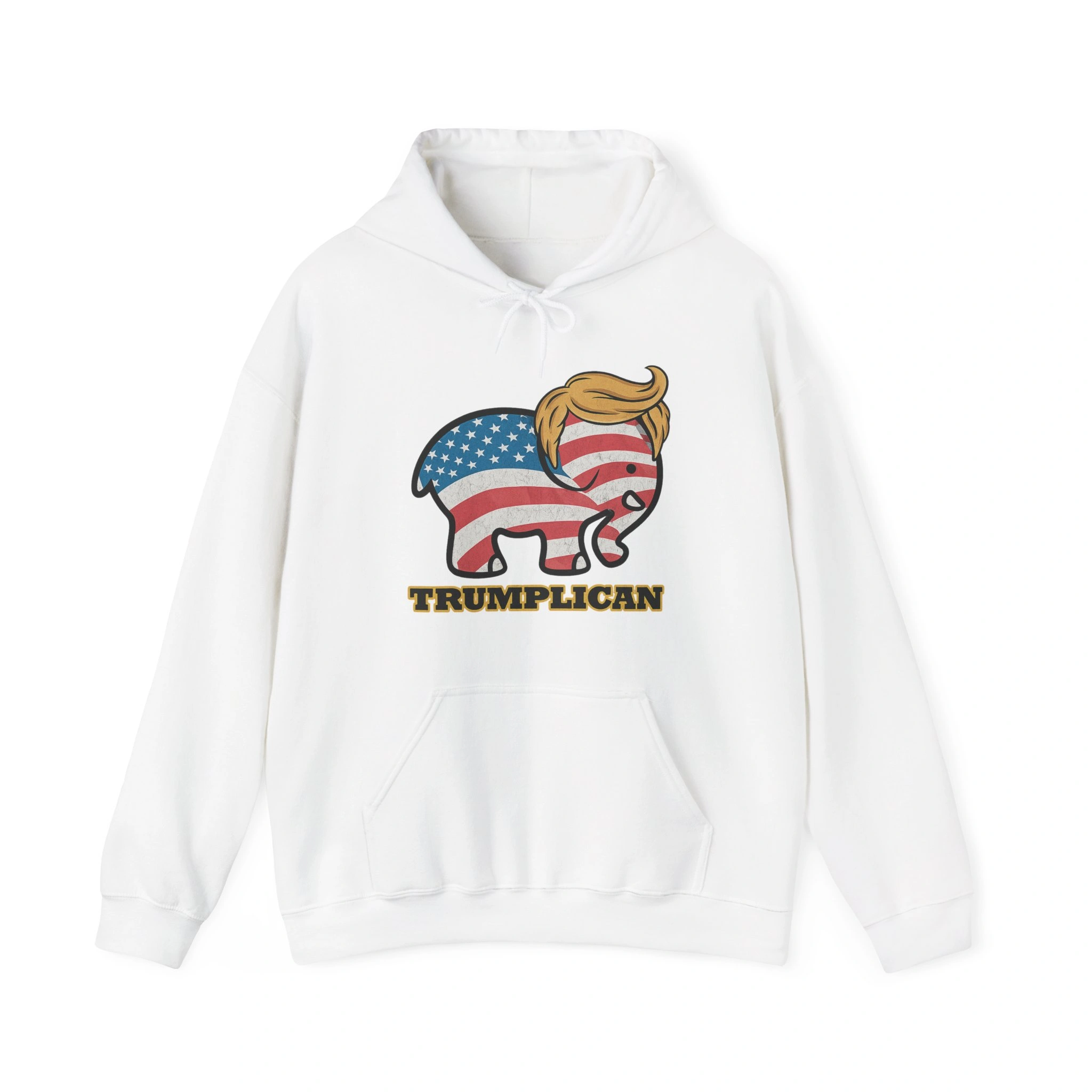 - Bold Typography: The word “TRUMPLICAN” is printed in a heavy, collegiate-style font with gold trim, ensuring the message is loud, proud, and impossible to ignore.
