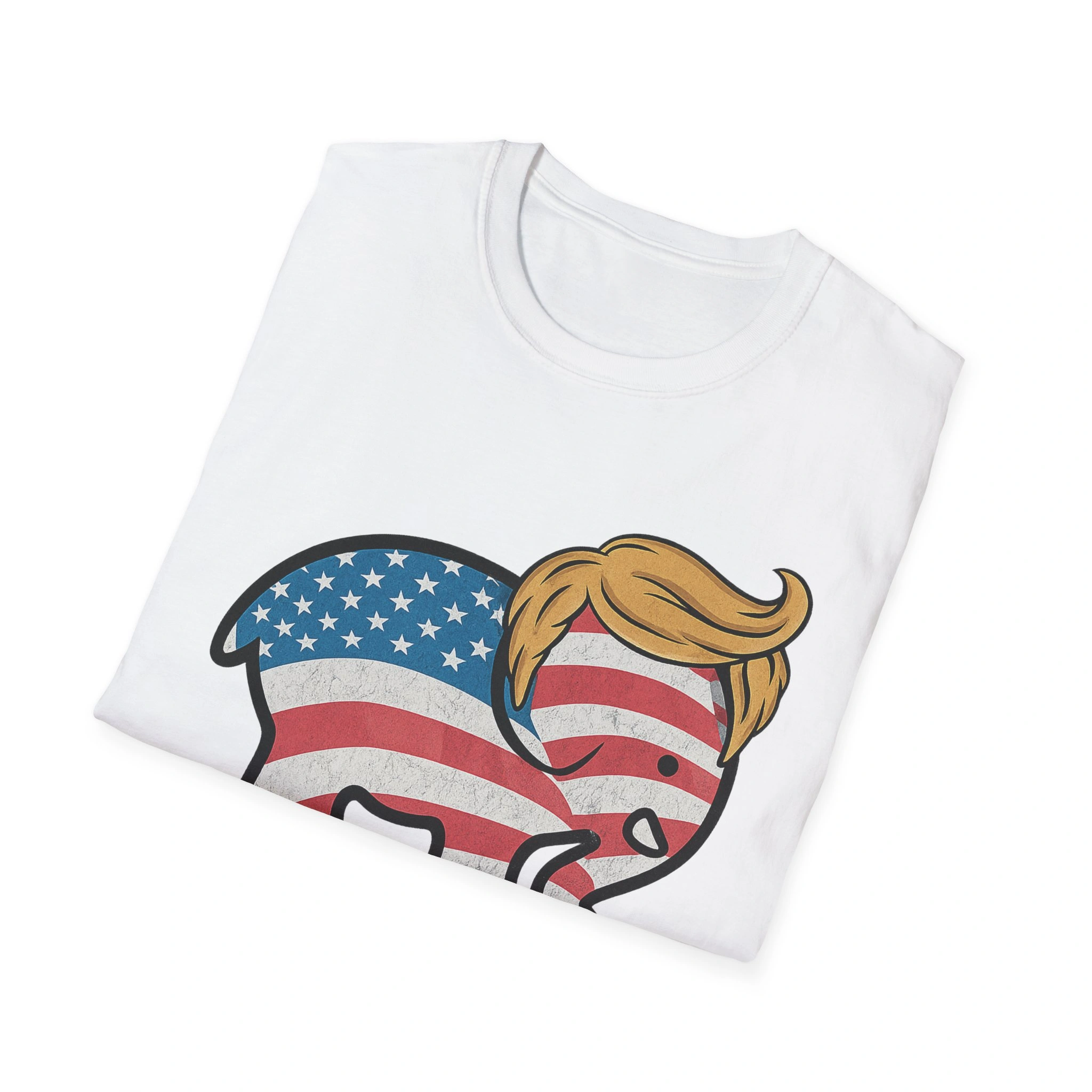 - Patriotic Detail: The body of the elephant is filled with a distressed, vintage-style American flag pattern, symbolizing deep patriotism and love for the country.