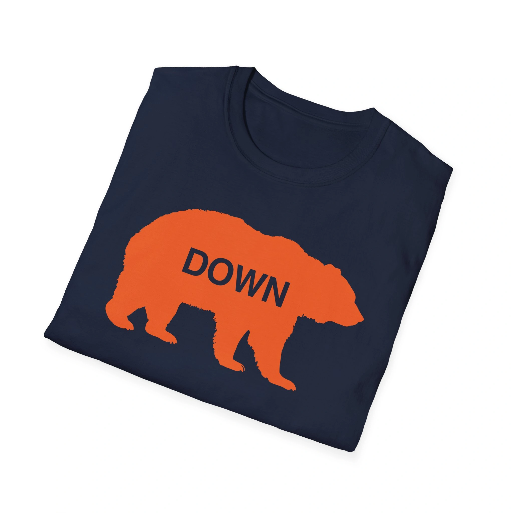 This isn’t just a logo tee; it’s a visual puzzle that every true fan in the Windy City understands immediately. The design features a bold, orange silhouette of a walking bear with the word “DOWN” clearly printed across its body. Put it together, and you get the ultimate rallying cry: BEAR DOWN.